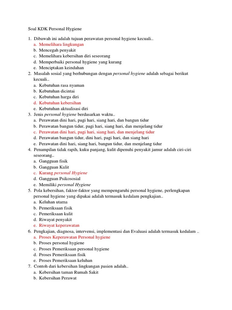 Pertanyaan Seputar Personal Hygiene - Soal Kdk - We did not find results for:. Check spelling or type a new query. Maybe you would like to learn more about one of these? We did not find results for: