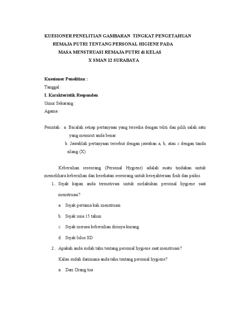 Soal Pilihan Ganda Personal Hygiene Sekali from imgv2-2-f.scribdassets.com Check spelling or type a new query. Maybe you would like to learn more about one of these? We did not find results for: